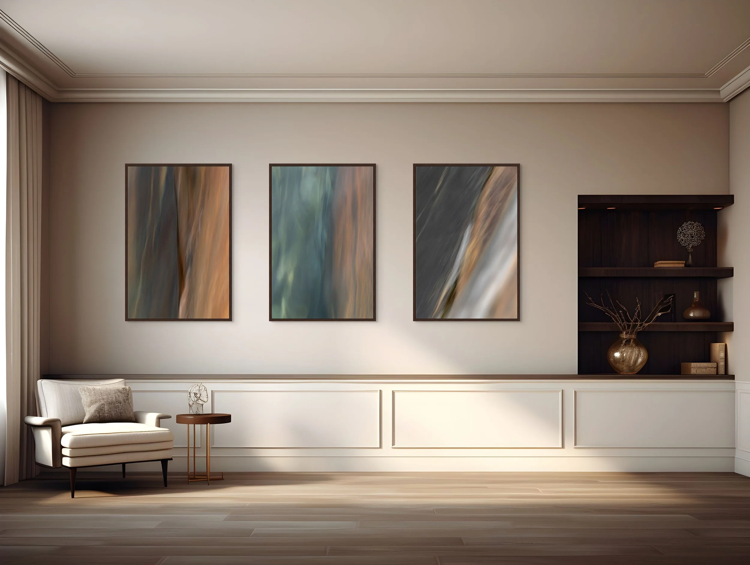 Using long exposures and intentional camera movement, she applied landscape techniques in an unexpected way, transforming observation into abstraction. The camera became both instrument and brush. Layers dissolve into one another, shapes soften, and fields of color gather depth, gently dissolving the boundary between photography and painting, creating images that feel atmospheric and immersive.